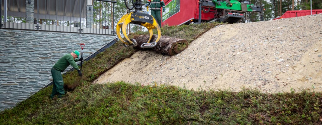 Kunttaa voi asentaa monenlaisiin ympäristöihin, niin tasaisiin maastoihin kuin myös rinnealueille. Vuosien mittaan olemme asentaneet kunttaa satoihin erilaisiin kohteisiin upein lopputuloksin. Piiraisen Kuntta® suuren palakoon hyödyt tulevat esille erityisesti jyrkemmissä rinnepaikoissa, joissa kuntta kiinnitetään maapohjaan käyttäen esimerkiksi puutappeja. Myös omatoimiselle asentajalle kuntta järjestyy ja annammekin hyvät ohjeet toteutusta varten. Pilkomme rullat tarvittaessa pienempiin palasiin toimituksen yhteydessä.